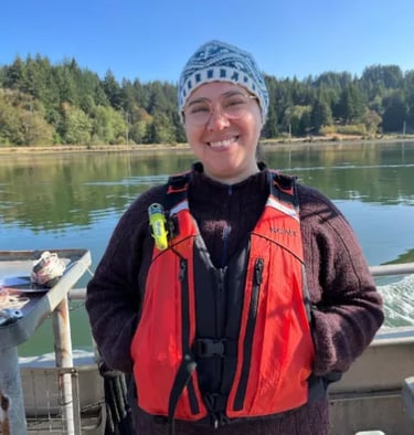 Emily Hicks is a graduate student at Oregon State University in the M.S. Marine Resource Management program studying the perceptions held towards the invasive Mud Blister Worm (polydora spp.) in PNW estuaries. She is also working with projects on the ostreid herpesvirus as it impacts Oregon aquaculture, and national campus biosecurity policies. She lives in Veneta, OR with her life partner, daughter, and cats. In her free time she enjoys bicycling, hiking, reading scifi and fantasy, quilting, knitting, and baking.